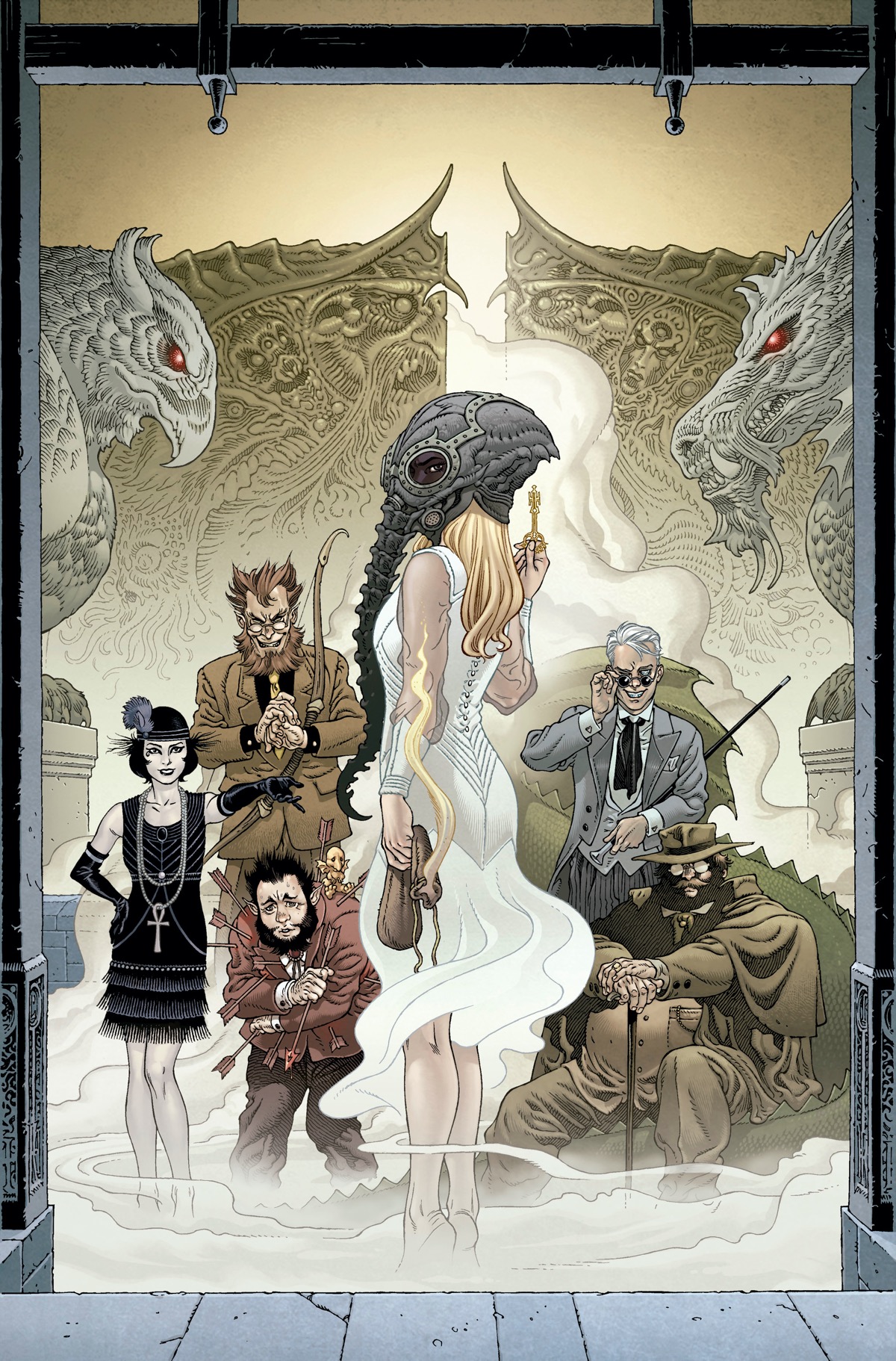 “If you think you can unlock the gates of Hell and just invite yourself in, you must be Dreaming! The epic crossover between two of the most beloved fantasy universes in comics begins here. John “Jack” Locke is ten years dead, but that hasn’t stopped him from posting the occasional letter home… from Hell. Now, Mary Locke will do anything to save her brother’s soul. Her quest to rescue him from The Pit will require her to outsmart Roderick Burgess (the most evil man in England), puzzle her way through the House of Mystery, and risk the walking nightmare known as The Corinthian in the disintegrating Kingdom of Dreams!”