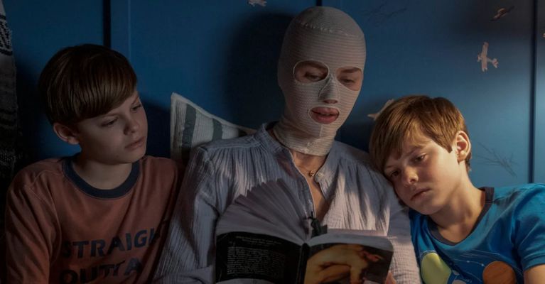In Goodnight Mommy, “When twin brothers (Cameron and Nicholas Crovetti) arrive at their mother’s (Naomi Watts) country home to discover her face covered in bandages—the result, she explains, of recent cosmetic surgery—they immediately sense that something doesn’t add up. She sets strange new house rules, smokes in her bathroom, and secretly rips up a drawing they gave her—things their loving mother would never do.