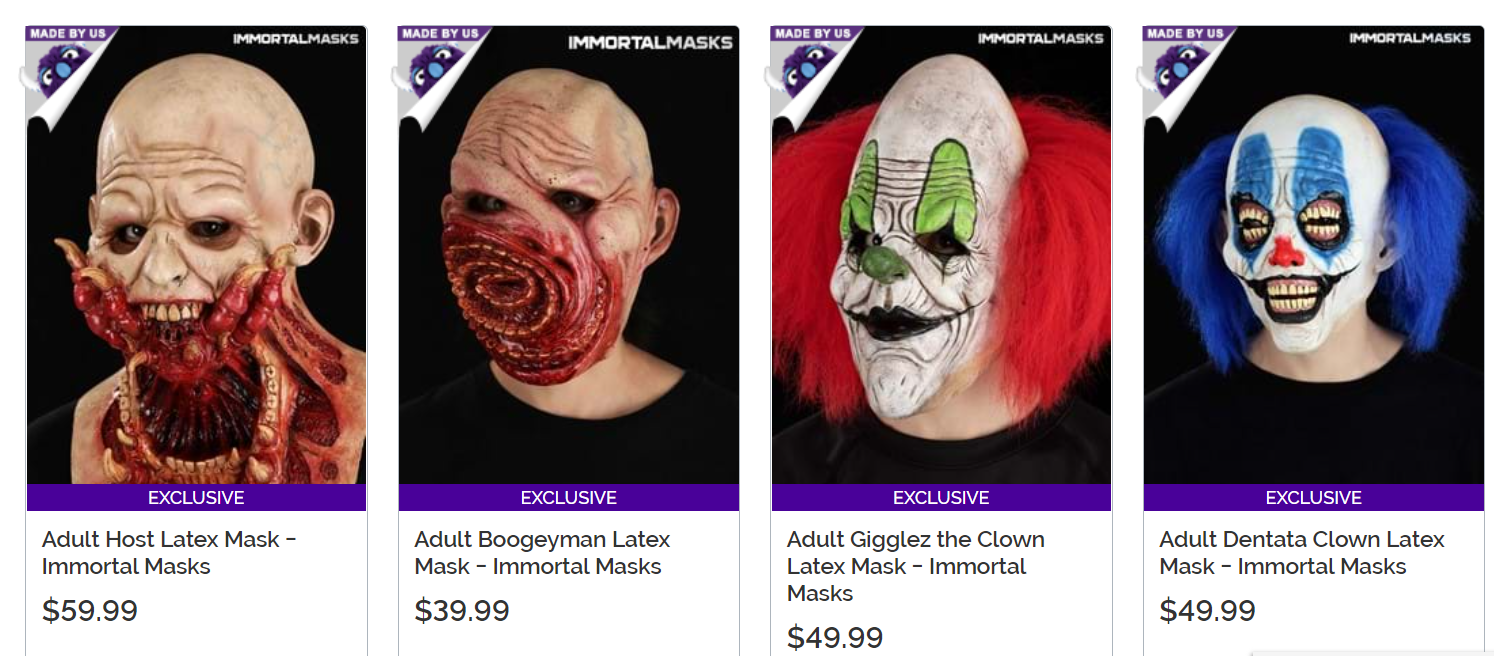 Ranging from $39.99 to $59.99, which is a sweet deal, the masks include everything from creepy clowns to grotesque abominations.