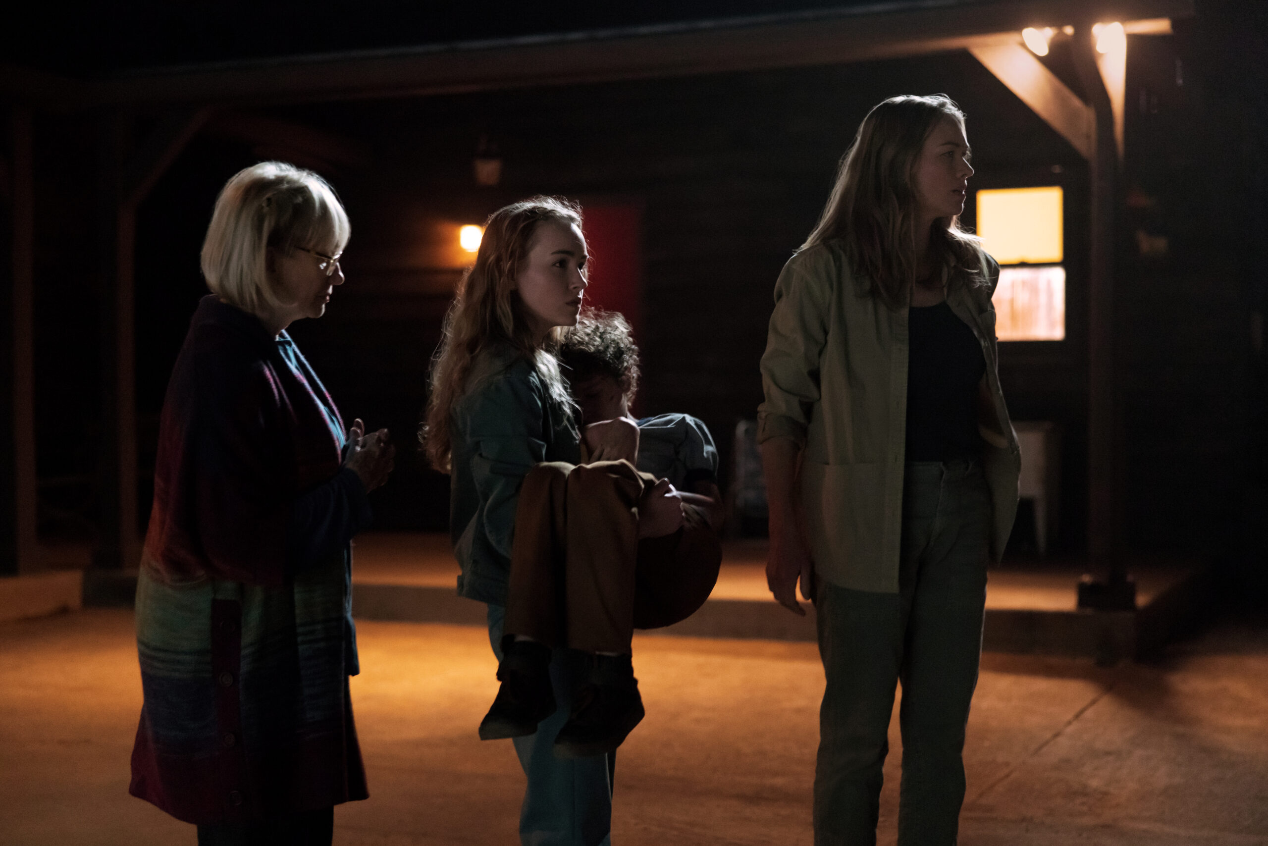 - TEACUP — “My Little Lighthouse” Episode 102 — Pictured: (l-r) Kathy Baker as Ellen Chenoweth, Emilie Bierre as Meryl Chenoweth, Caleb Dolden as Arlo Chenoweth, Yvonne Strahovski as Maggie Chenoweth — (Photo by: Mark Hill/Peacock)