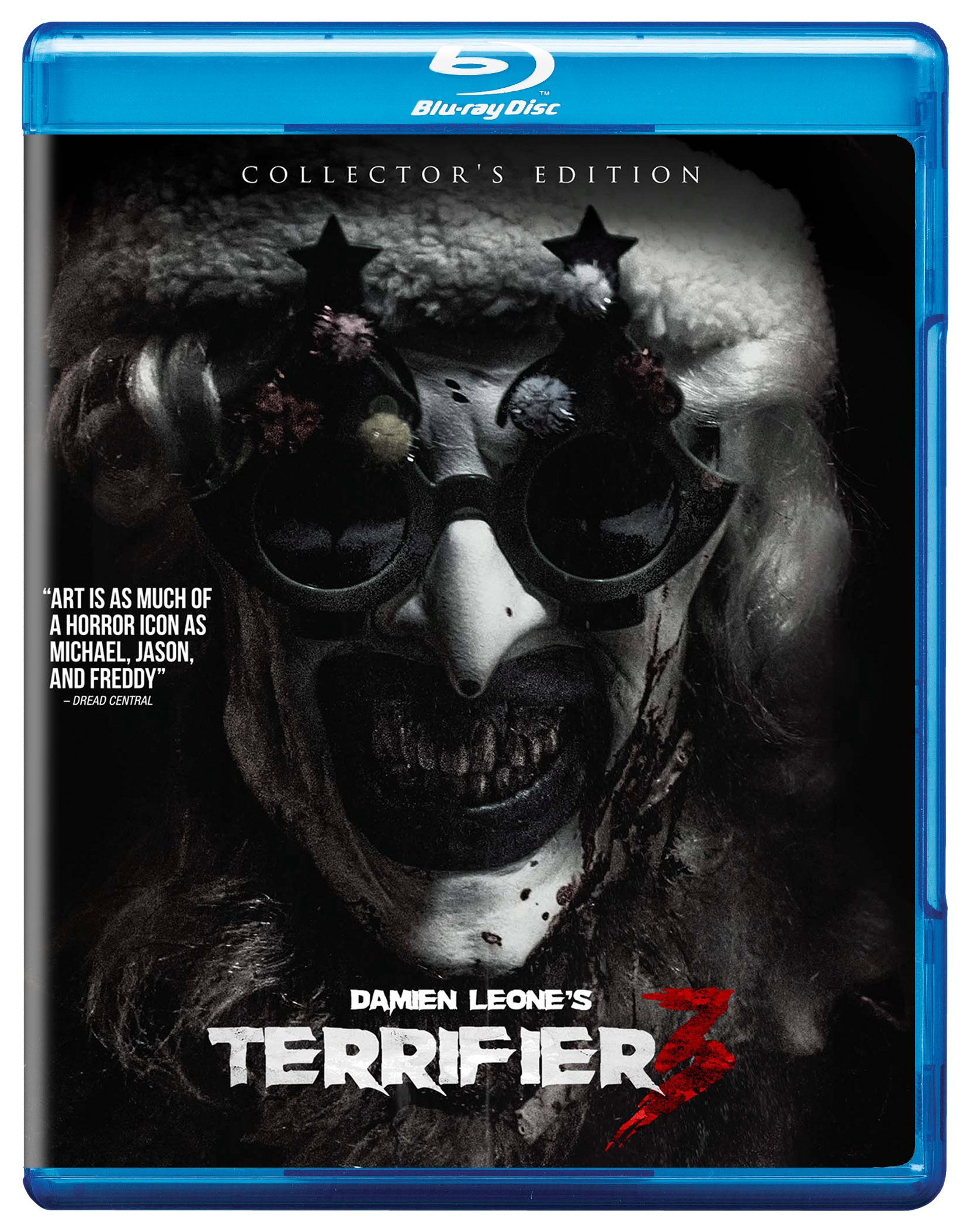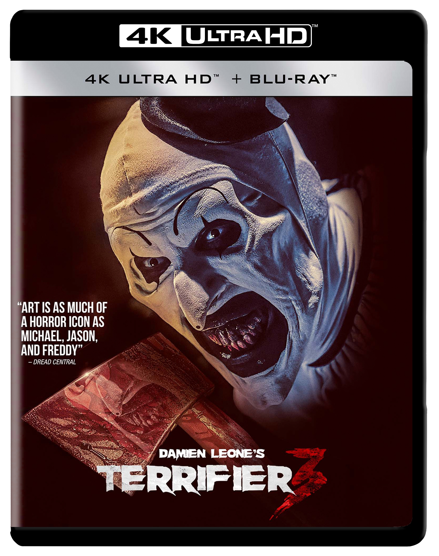 Own Terrifier 3 on 4K, Blu-ray, and Collector’s Edition Blu-ray on December 17, 2024. Or give it to the horror fan in our life as a killer Christmas present. Bonus features include: “Making Of” featurette, a creepy twist on the traditional Yule log with the “Eulogy Log” featuring David Howard Thornton as Art the Clown, and much more…
