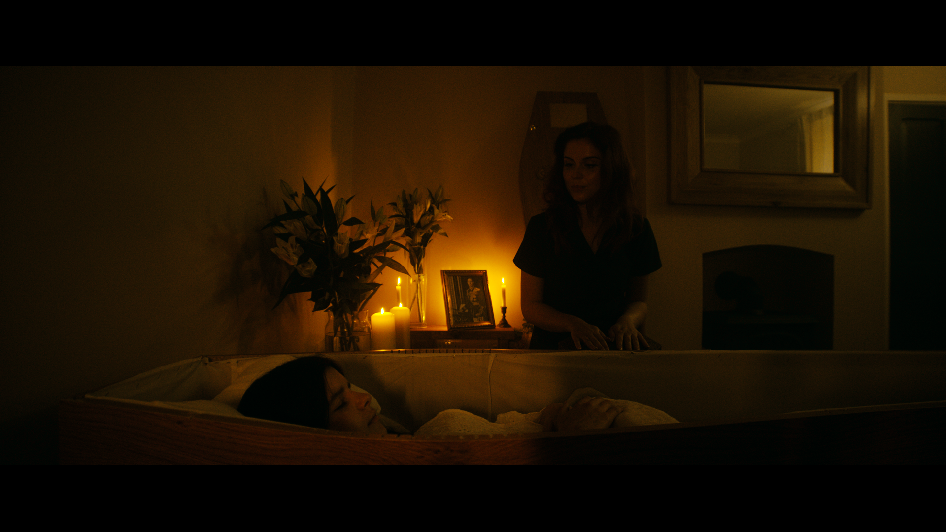 The film is set in England at the end of World War II. Nancy, an undertaker’s assistant, takes on an unexpected job in a remote, rural area. She is tasked with looking after the body of a young girl who has died under mysterious circumstances. Alone with the body in an isolated cottage, Nancy begins to prepare her for the wake. However, she soon discovers that things are not what they seem, as a deep psychological dread takes hold.