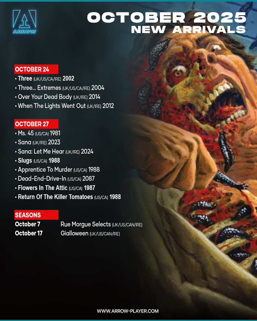 Get ready for a Halloween season filled with chills, thrills, and more. Head over to ARROW to start watching now. Subscriptions are available for $6.99 monthly or $69.99 yearly.