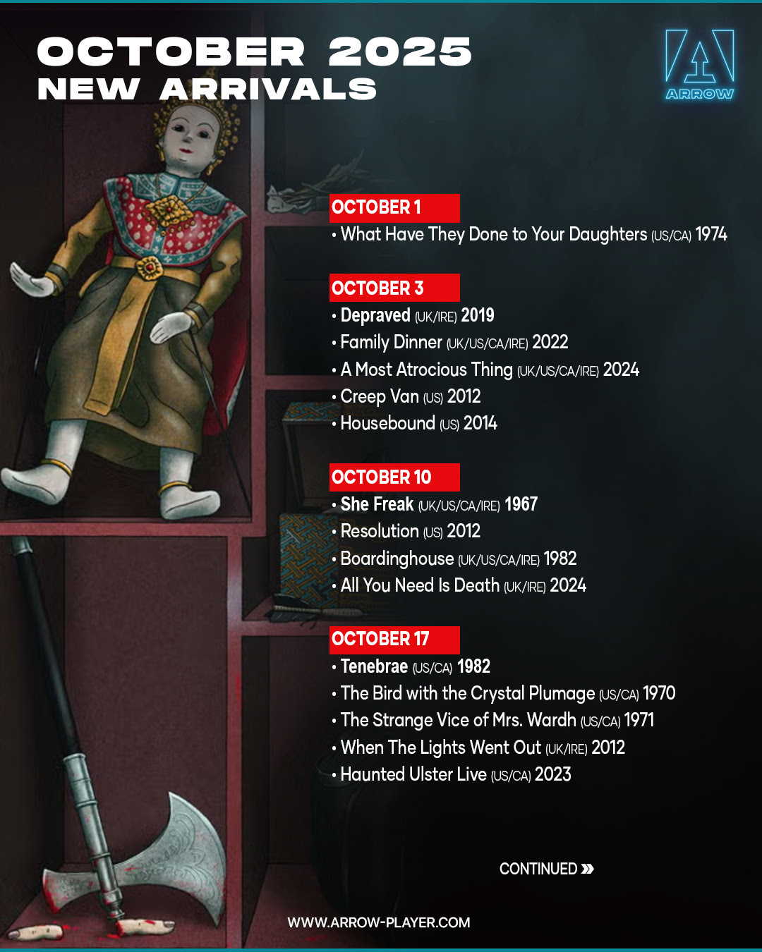 ARROW Player’s October Lineup Continues with More Terrifying Treats