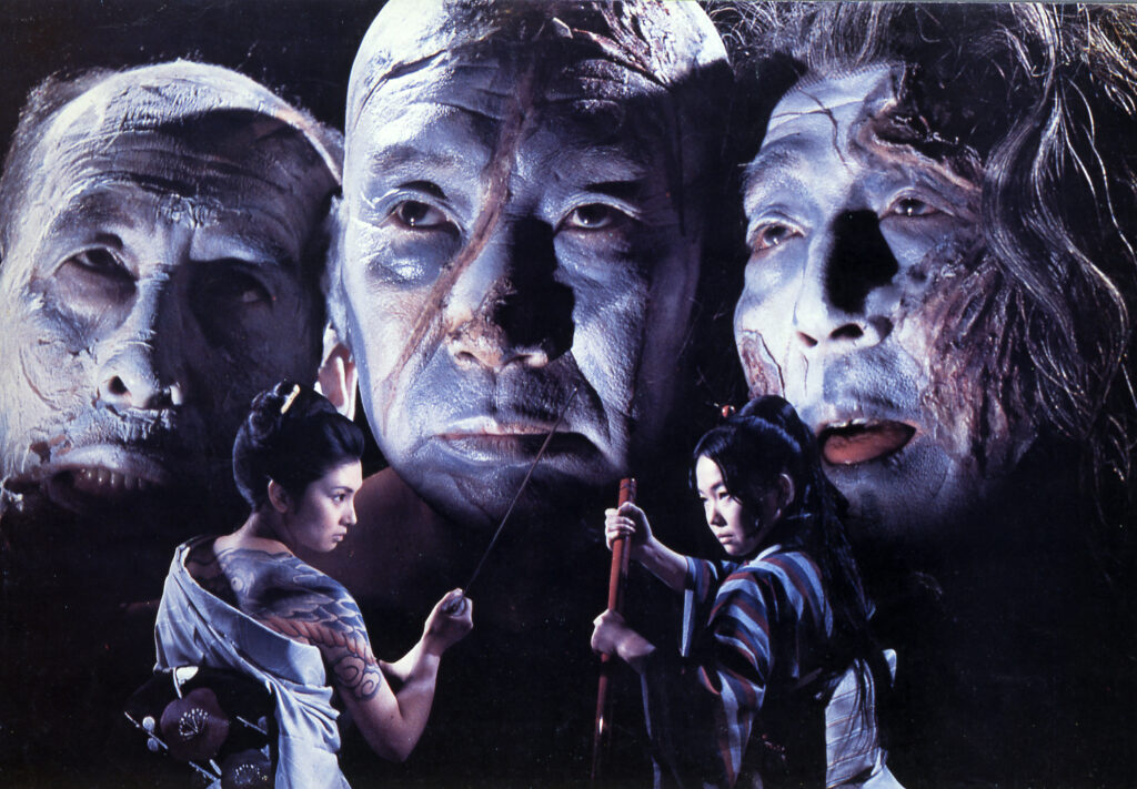Although she began her acting career at Nikkatsu under her real name, Masako Ota became Meiko Kaji on the advice of her mentor Masahiro Makino, and this phantasmagoric female swordplay saga—the best period film Kaji made at Nikkatsu—was her first starring role under her new, tougher name. The third and final entry in the Rising Dragon series of female gambler films that starred Hiroko Ogi, Blind Woman’s Curse dispenses not only with the original character but also Ogi herself, instead casting Kaji as the benevolent, tattooed leader of a band of yakuza. Kaji and her gang become targets of supernatural vengeance after she blinds another swordswoman in a duel, and genre master Teruo Ishii adds his signature erotic-grotesque elements to the story, which may be the best female swordplay-cum-ghost cat horror film Japan ever produced.