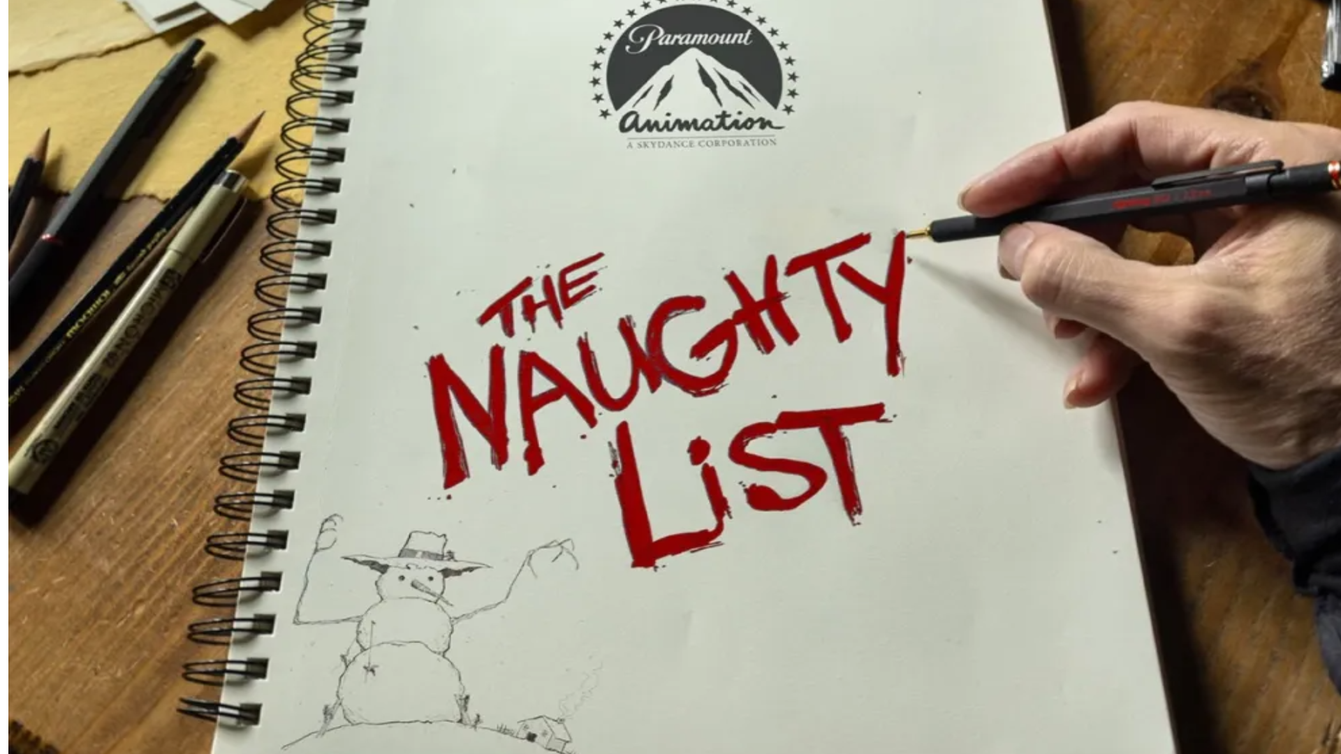 On social media, Rodriguez revealed his inner “cartoonist-at-heart,” sharing early concept art that featured a group of kids scaling a massive snowman.